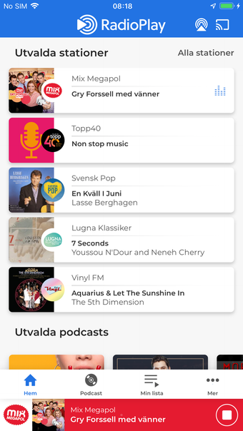 مع راديو بلاي، يمكنك الاستماع إلى محطاتك المفضلة أثناء التنقل، سواء كانت مباشرة أو حسب الطلب. يتضمن التطبيق محطات شهيرة مثل ميكس ميجابول، إن آر جي سفيريج، روك كلاسيكر، راديو ديزني، سفينسك بوب، فينيل 107، وغيرها الكثير. يمكنك استكشاف مجموعة متنوعة من البرامج الإذاعية والمقابلات والبودكاست والمحتوى الآخر.